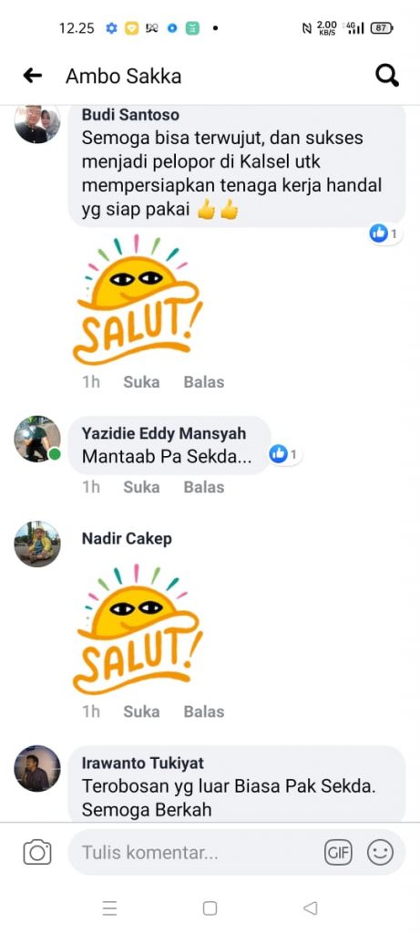 Sementara Budi Santoso, yang dikenal sebagai Direktur STIKES Darul Azhar Batulicin, mendoakan, Semoga bisa terwujut, dan sukses menjadi pelopor di Kalsel utk mempersiapkan tenaga kerja handal dan siap pakai, sambil menempel tanda emot jempol.