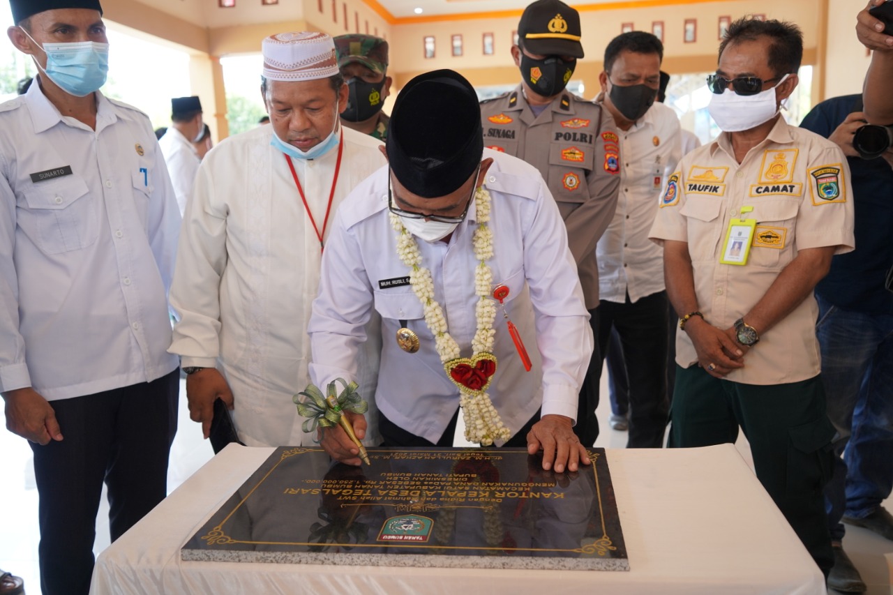 Dihadiri sejumlah kepala SKPD dilingkup pemkab Tanah Bumbu, dan berbagai unsur terkait, Muhammad Rusli meresmikan kantor desa Tegal Sari.
