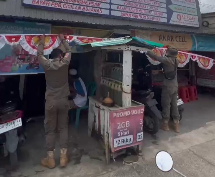 TANAH BUMBU, aktualkalsel.com — Satpol PP dan Damkar Kabupaten Tanah Bumbu menghimbau kepada masyarakat untuk memasang bendera merah putih di halaman rumah masing-masing, dan pertokoan dalam rangka menyambut HUT Proklamasi Kemerdekaan tanggal 17 Agustus 2024.