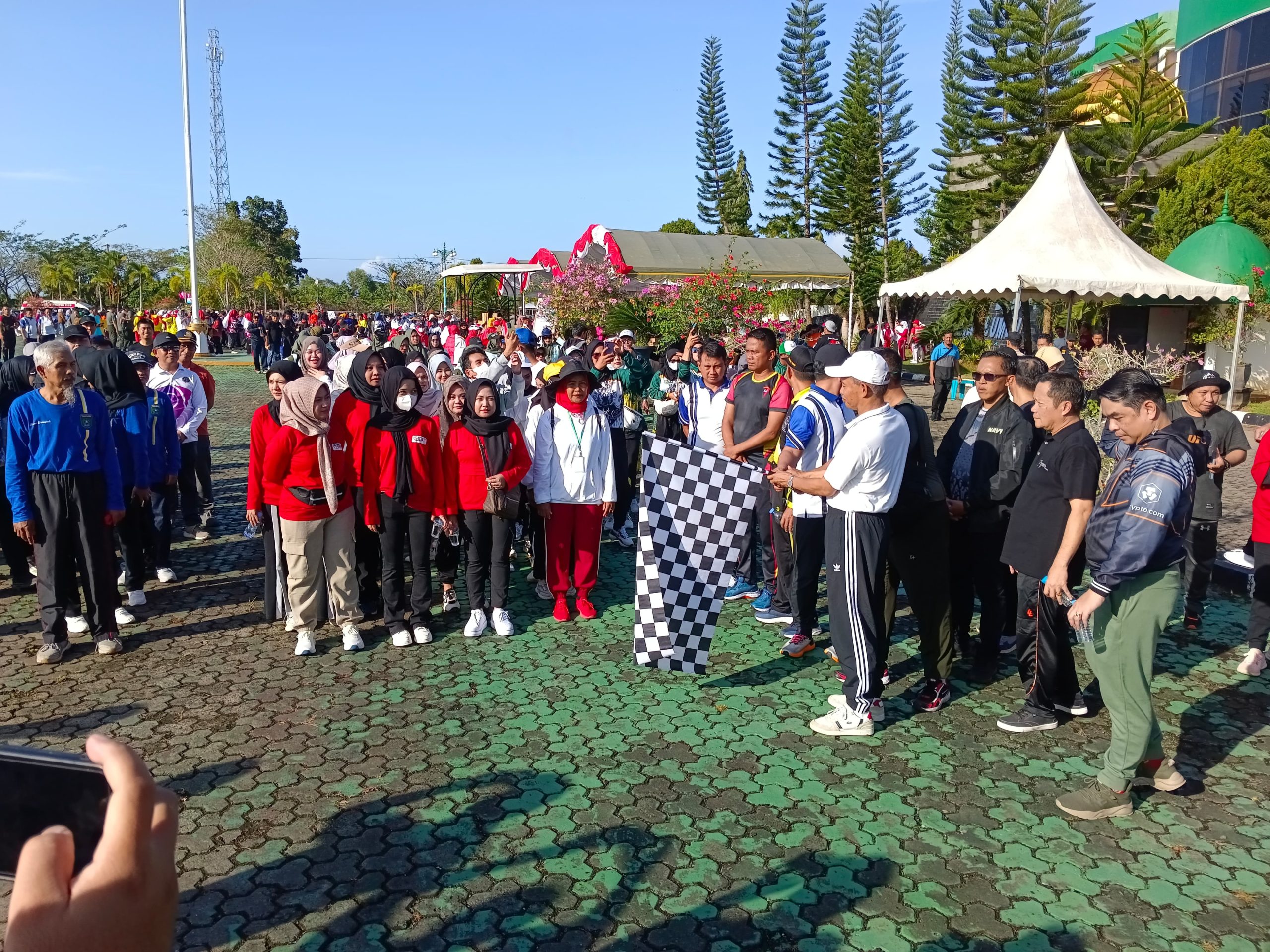 Kegiatan juga diisi dengan penyerahan bendera Merah Putih secara simbolis oleh Sekda Ambo Sakka. Selain itu juga pembagian doorprize peserta jalan santai. ardi/Edwan