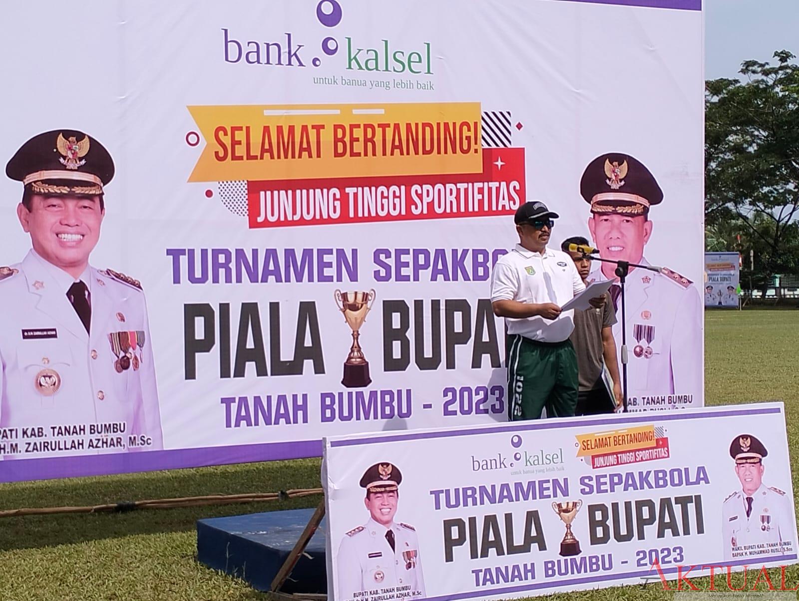 TANAH BUMBU, aktualkalsel.com — Bupati Tanah Bumbu Abah Zairullah Azhar diwakili Sekretaris Daerah DR. Ambo Sakka menghadiri pembukaan Turnamen Sepakbola bertajuk Bupati Cup Tahun 2023, di Lapangan 7 Februari Kecamatan Kusan Hilir, Rabu (22/2/2023).