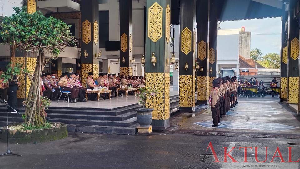 BANJARMASIN aktualkalsel.com—upacara Gelar Senja di Balai Kota Banjarmasin diselenggarakan kembali paska-pandemi covid. Jumat 29 Juli 2022 sore gelar itu berlangsung diikuti para tunas pramuka di kota ini dengan ‘tuan rumah’ kwartir rantung Banjarmasin Barat.