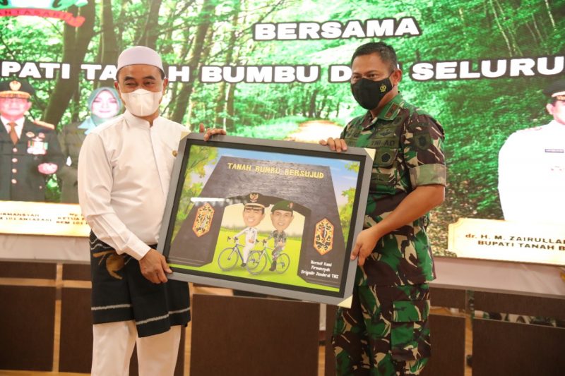 TANAH BUMBU, aktualkalsel.com, – Bupati Tanah Bumbu HM. Zairullah memberikan sambutan baik kunjungan sekaligus silaturahmi Danrem 101 Antasari, Brigjen TNI Firmansyah bersama dengan sang istri Ketua Ketua Persit KCK Koorcab, Pupu Firmansyah yang berlangsung di Digital Live Room (DLR) Lantai 4 Kantor Bupati Tanah Bumbu pada Jumat (28/1/2022) kemarin.