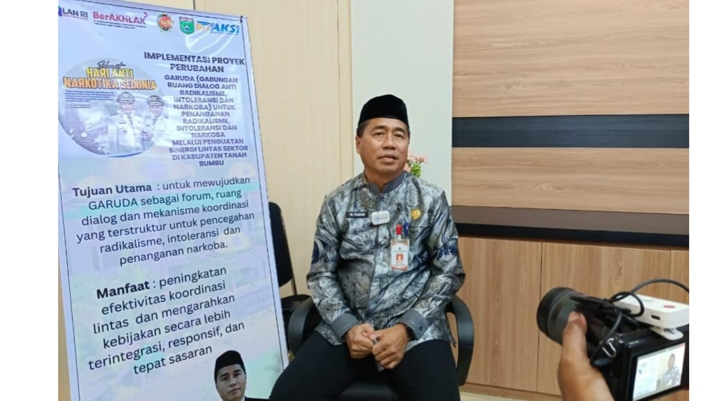 TANAH BUMBU, aktualkalsel.com — Staf Ahli Bapati Bidang Pemerintahan, Hukum dan Politik Kabupaten Tanah Bumbu M. Yamani menggagas Implementasi Proyek Perubahan Tahun 2025 dengan jargon Garuda “Gabungan Ruang Dialog Anti Radikalisme, Intoleransi dan Narkoba” melalui penguatan sinergi lintas sektor di Kabupaten Tanah Bumbu.