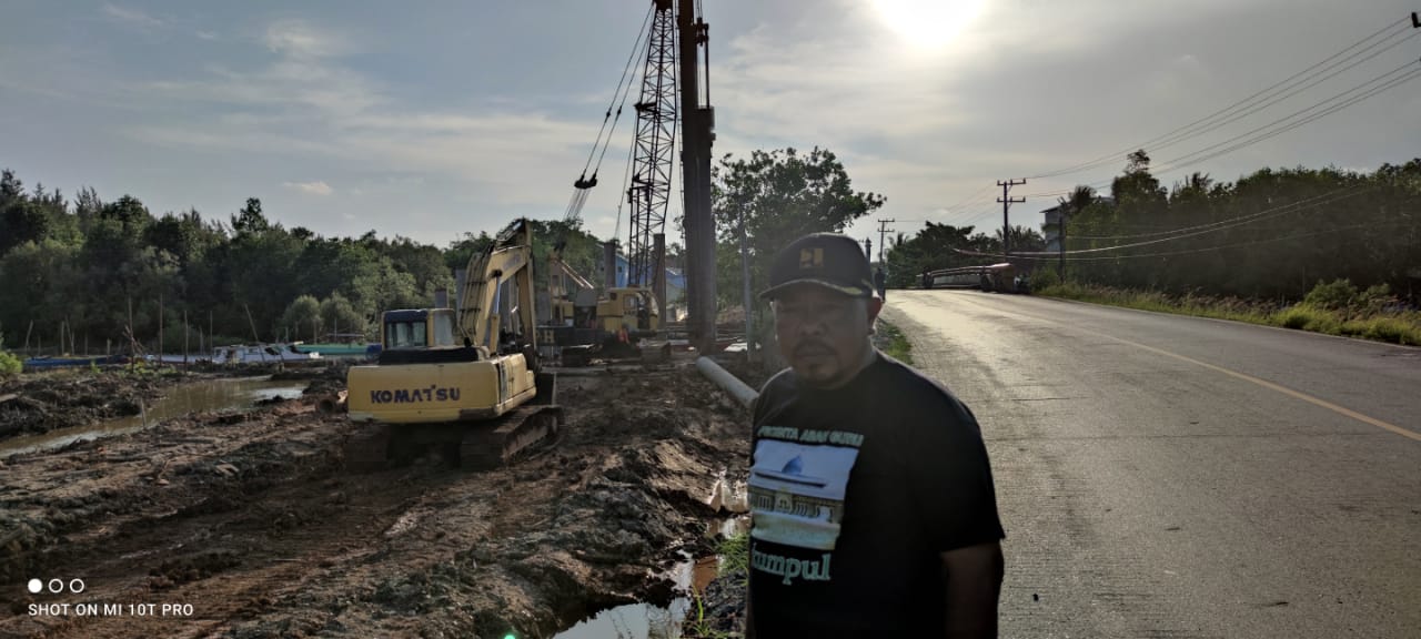 TANAH BUMBU, aktualkalsel.com — Ketika balik dari Banjarmasin ke Kabupaten Tanah Bumbu, Plt Kadis PUPR Kabupaten Tanah Bumbu Subhansyah turun dari mobilnya untuk melihat proyek pelebaran jalan dan rencana pembangunan jembatan di daerah ini.