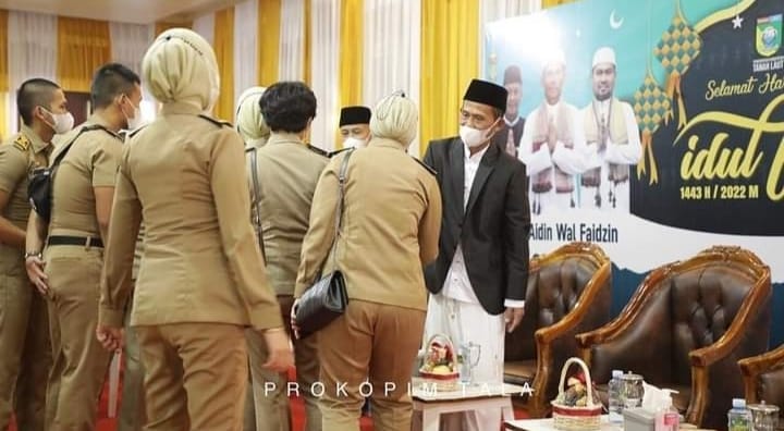 Kegiatan Halalbihalal atau yang sering disebut juga dengan Open House ini diamankan oleh Pimpinan dan Personel Satuan Polisi Pamong Praja dan Pemadam Kebakaran Kabupaten Tala, Pimpinan dan Personel Dinas Perhubungan Kabupaten Tala serta diatur oleh Pimpinan dan Personel Sub Bagian Protokol Sekretariat Daerah Kabupaten Tala. Diketahui, hal ini dilakukan demi menjaga ketertiban dan menghindari kerumunan masyarakat yang ingin bersalaman dengan para pejabat. rel/ edwan