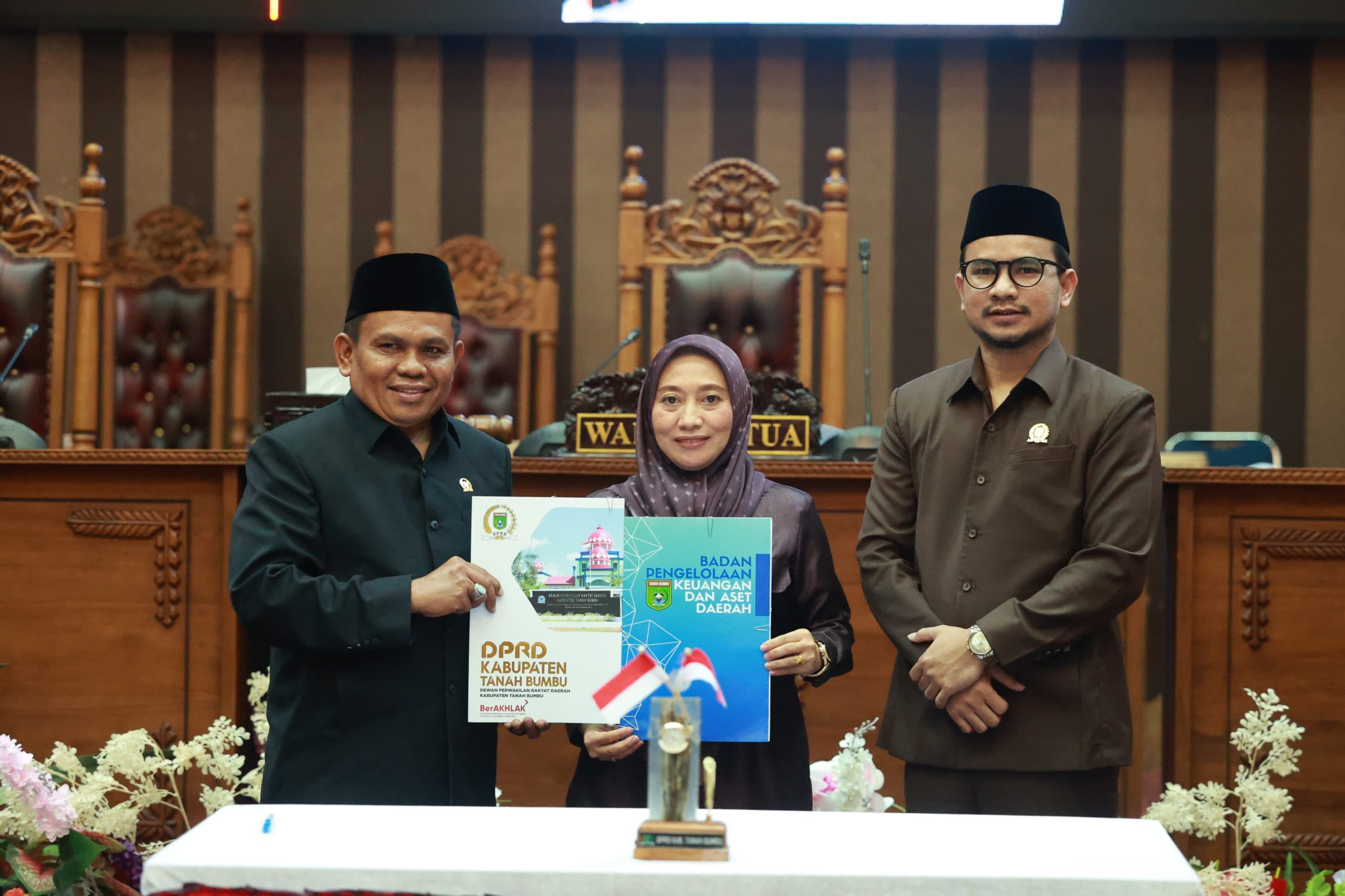 Rapat paripurna dipimpin Wakil Ketua I DPRD Tanah Bumbu, H. Hasanuddin. Hadir dalam rapat tersebut Wakil Ketua II DPRD Tanah Bumbu bersama anggota DPRD lainnya, Forkopimda, pimpinan SKPD, instansi vertikal, serta para undangan lainnya. ril