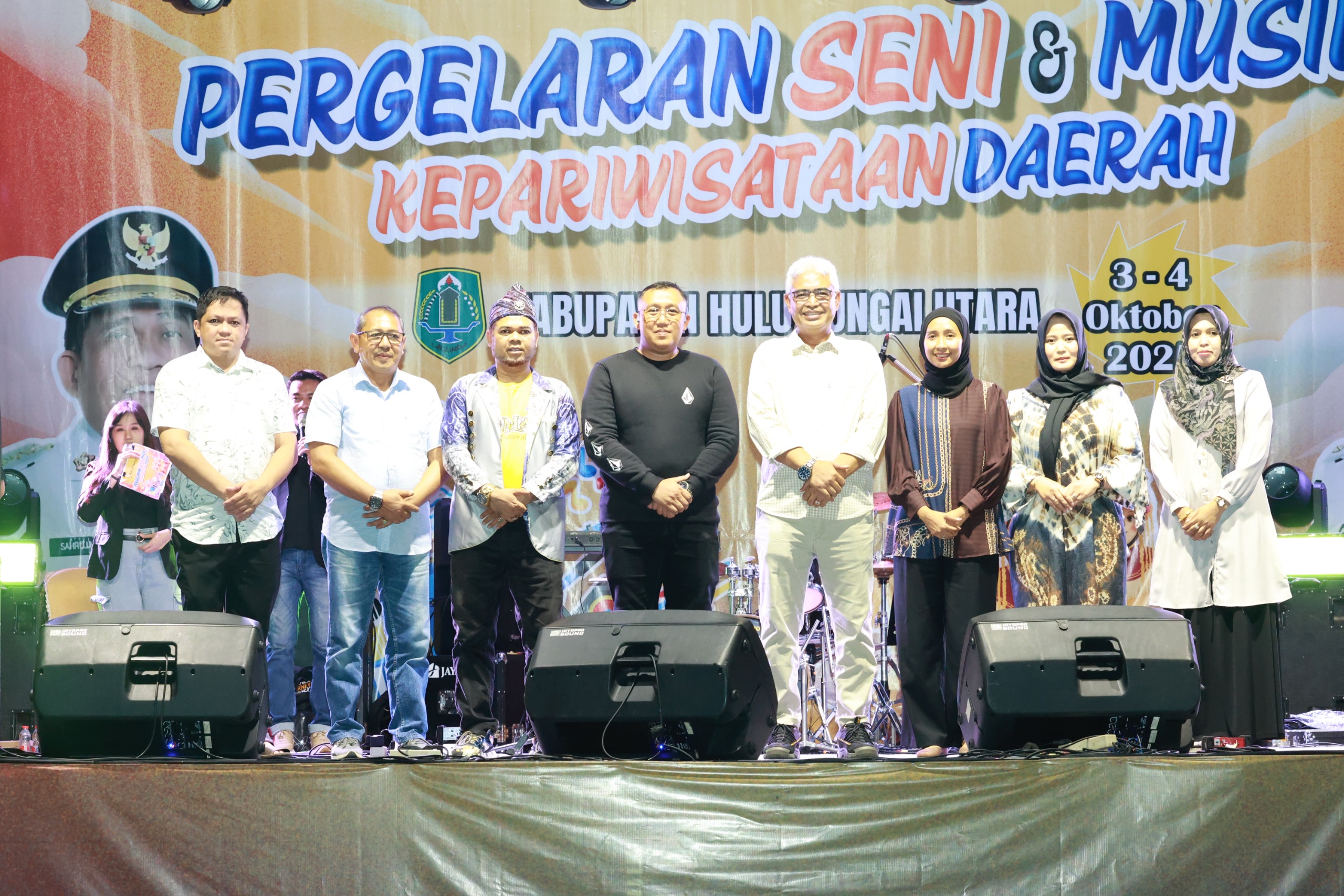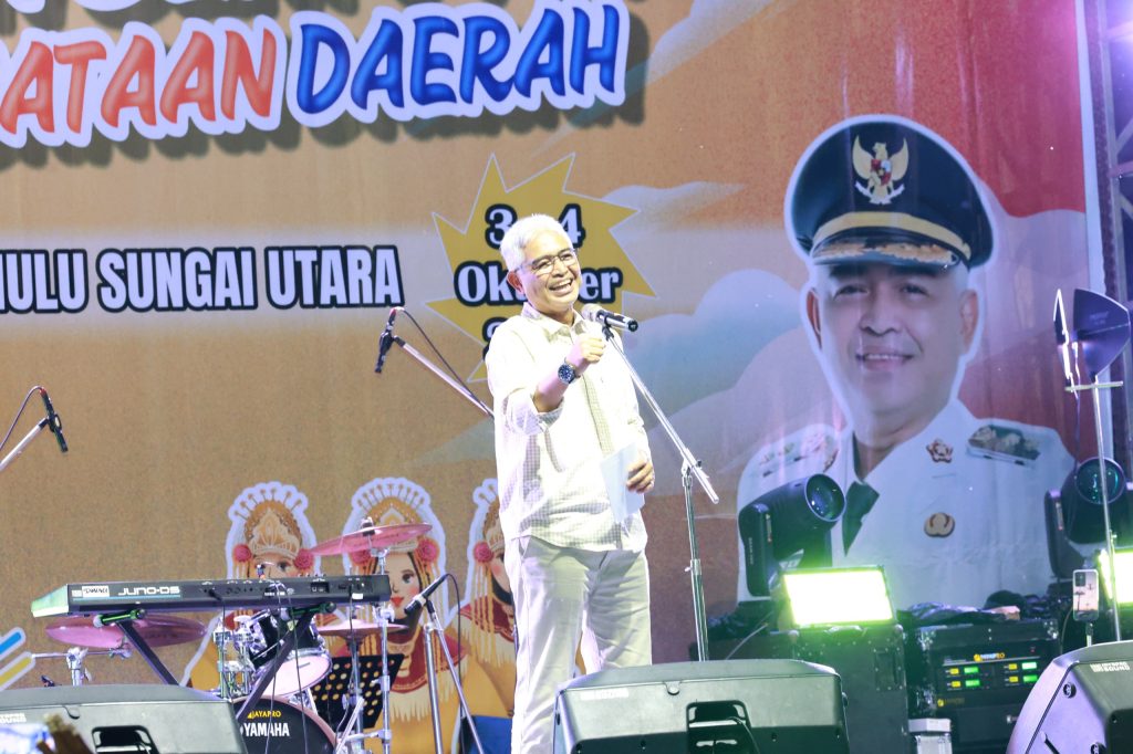 AMUNTAI, aktualkalsel.com – Bupati Hulu Sungai Utara (HSU) H. Sahrujani melalui Wakil Bupati HSU, Hero Setiawan, menyampaikan sambutan pada acara penutupan Pergelaran Seni & Musik dalam rangka Sumpah Pemuda dan Calendar of Event Bidang Pariwisata, yang digelar oleh Dinas Kepemudaan, Olahraga, dan Pariwisata Kabupaten HSU di Lapangan Pahlawan Amuntai, Sabtu malam (3/10/2025).
