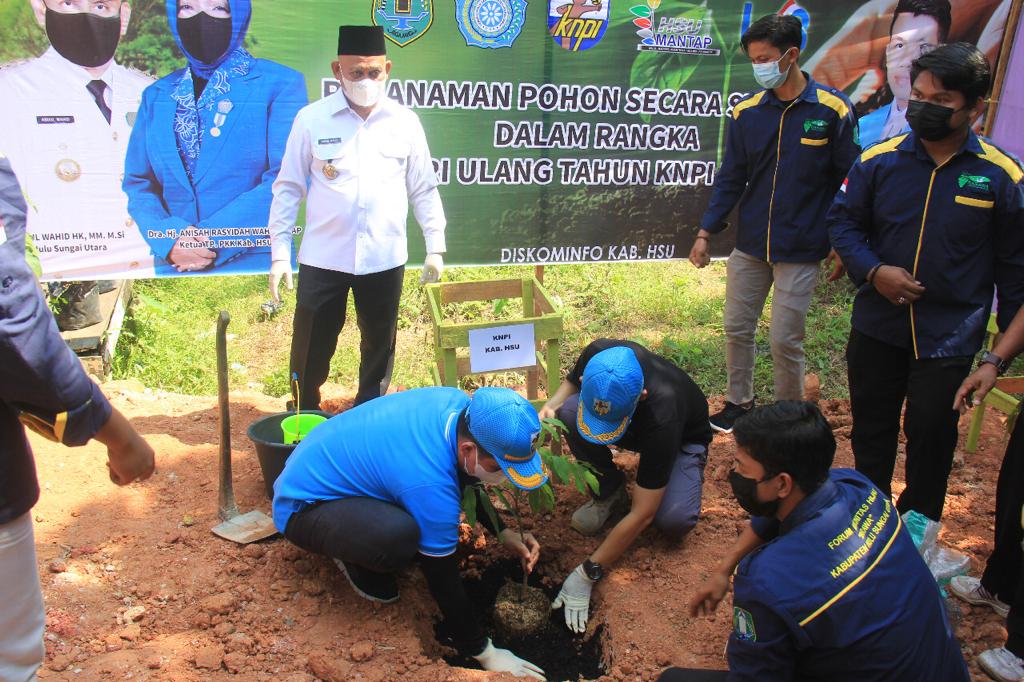 Adapun kegiatan dalam rangka peringatan momen HUT KNPI ke-48 ditandai juga dengan penanaman pohon bersama, tampak hadir Ketua TP PKK HSU, Ketua DPRD, Camat Haur Gading, Pejabat dilingkup SKPD dan Kepala Desa Pulantani.