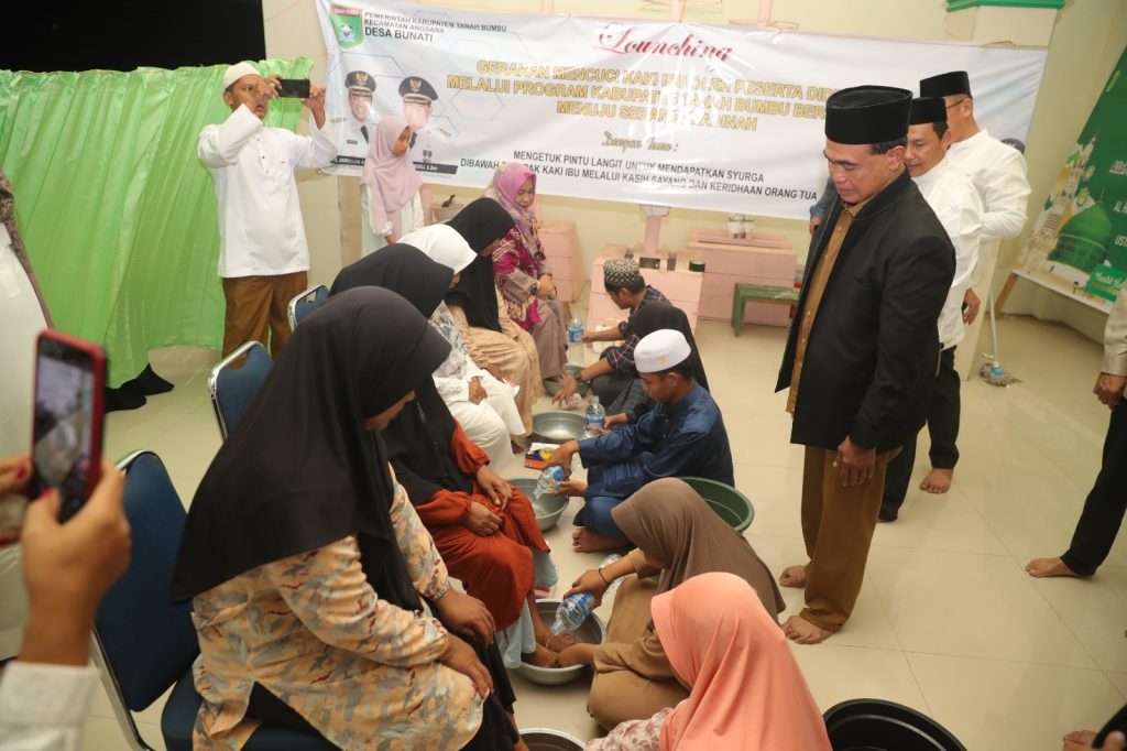 Serta melaksanakan program Mencuci Kaki Ibu yang di saksikan langsung Bupati Abah Zairullah Azhar, Sekda Ambo Sakka, dan Kepala SKPD Pemkab Tanah Bumbu. dd/Edwan