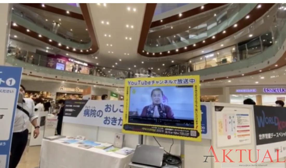 Di layar itu Walikota Ibnu Sina menyampaikan sambutannya dalam bahasa Indonesia selama 1 menit 29 detik, diawali dengan mengucapkan ‘assalamulaykum warohmatullahiwabarokatuh’ pada Hari Ginjal Dunia (World Kidney Day) di Kaikokai Health Group Nagoya Jepang & China (online & offline) 12 March 2023
